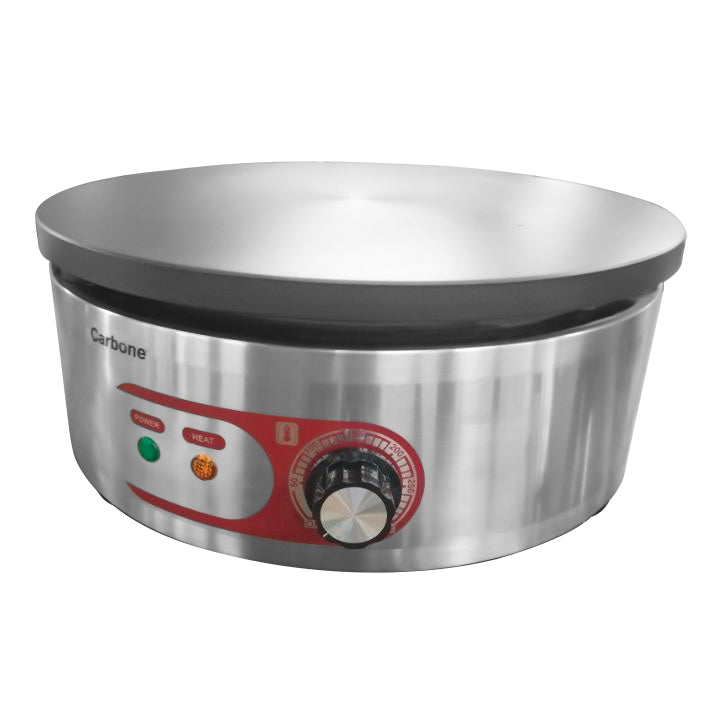 Plancha de crepes redonda electrica 1.5 KW 50~300 °C diametro de 400 mm. 110V/60 htz. Tamaño 400*400*200 mm.