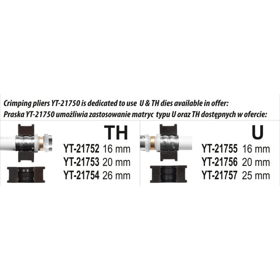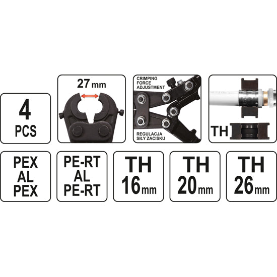 | ¿Dónde usarlo? | Prensa para tubos pex o pex-al-pex incluye dados para TH16 (1/2") /TH20 (3/4") /TH26 (1"). |