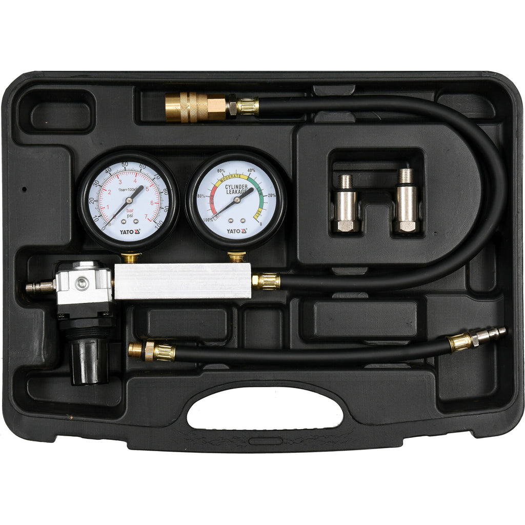 El probador de fugas de cilindros para motores de gasolina le permite diagnosticar rápida y fácilmente fugas en la cámara de combustión. Le permite probar el grado de desgaste del motor