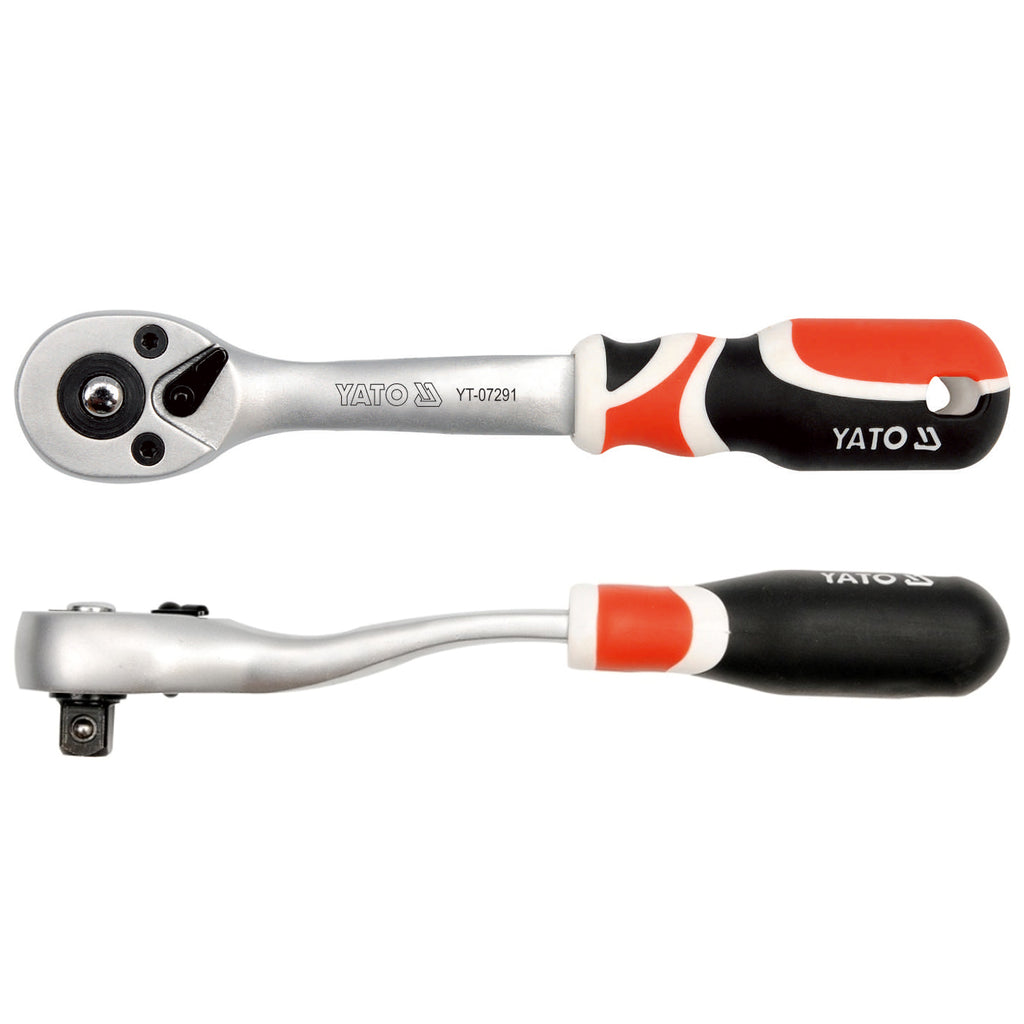 Yato Ratchet Curva De Rapida Liberacion De 1/4''; 72T; Curva; Rapida Liberacion; Acabado Satinado; Material: Crv 6140; Mango De 3 Colores; Logotipo De Yato En El Mango, y Numero De Item Estapado En La Seccion Metalica Del Mango Ratchet