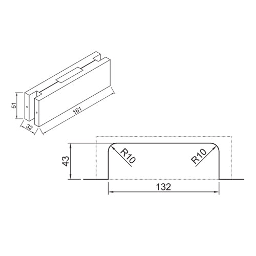 | Características | Se usa en puertas de vidrio, para acomodar el hardware: pivotes, cerraduras, cierres, etc. |