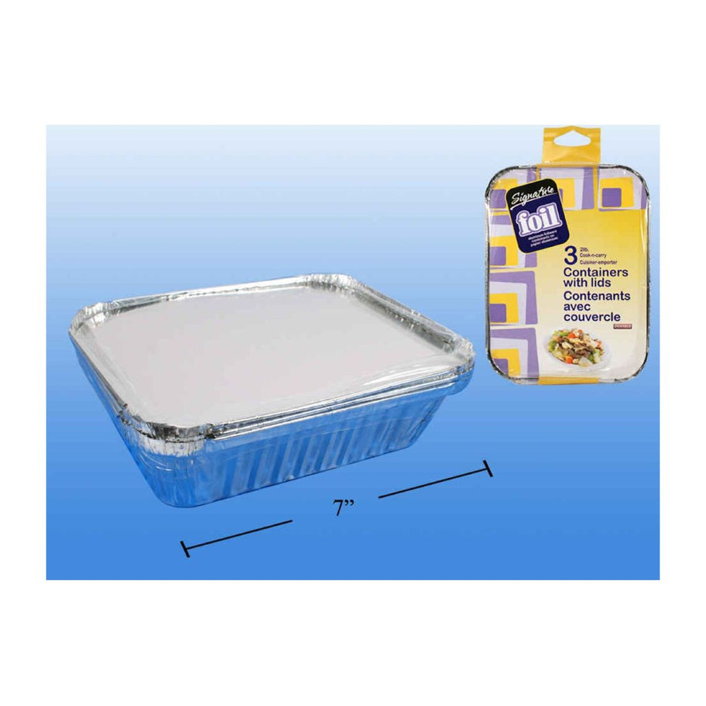Recipiente de aluminio de 3 piezas y 2 lb con tapas, 7-1 / 4x5-3 / 8x2 ''