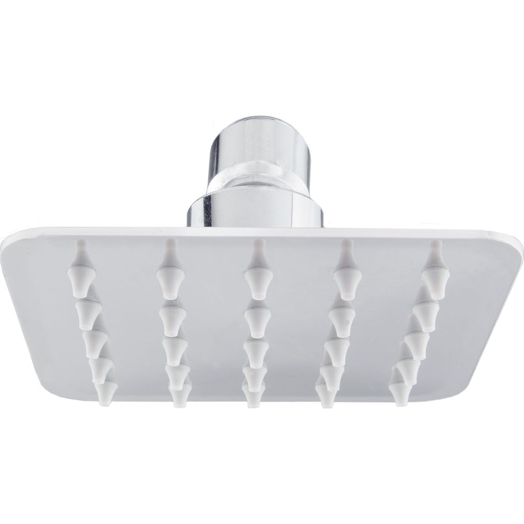 Regadera de plato cuadrado de 4” sin brazo y chapetón. Cuerpo en acero inoxidable 304 . Acabado cromo. Trabaja a baja presión (0.2 a 1 kg/cm2). Garantía de 3 años sobre defectos de fabrica