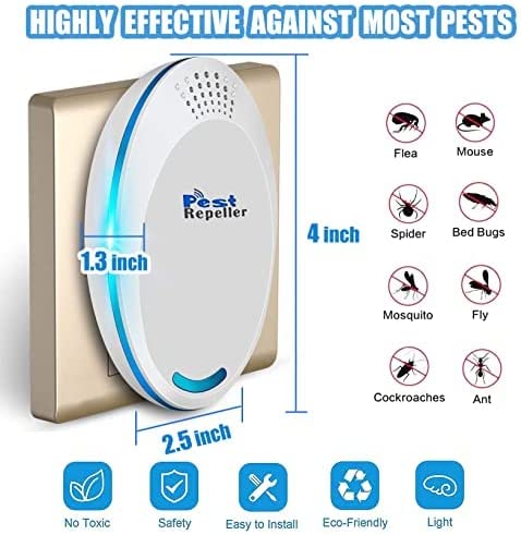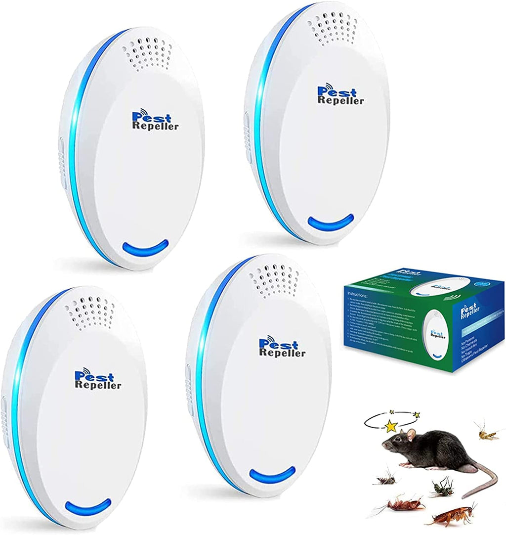 Juego de 4 repelentes ultrasónicos de plagas para insectos, ratas, cucarachas, arañas, moscas, dispositivo para el hogar, oficina, almacén, hotel, etc.