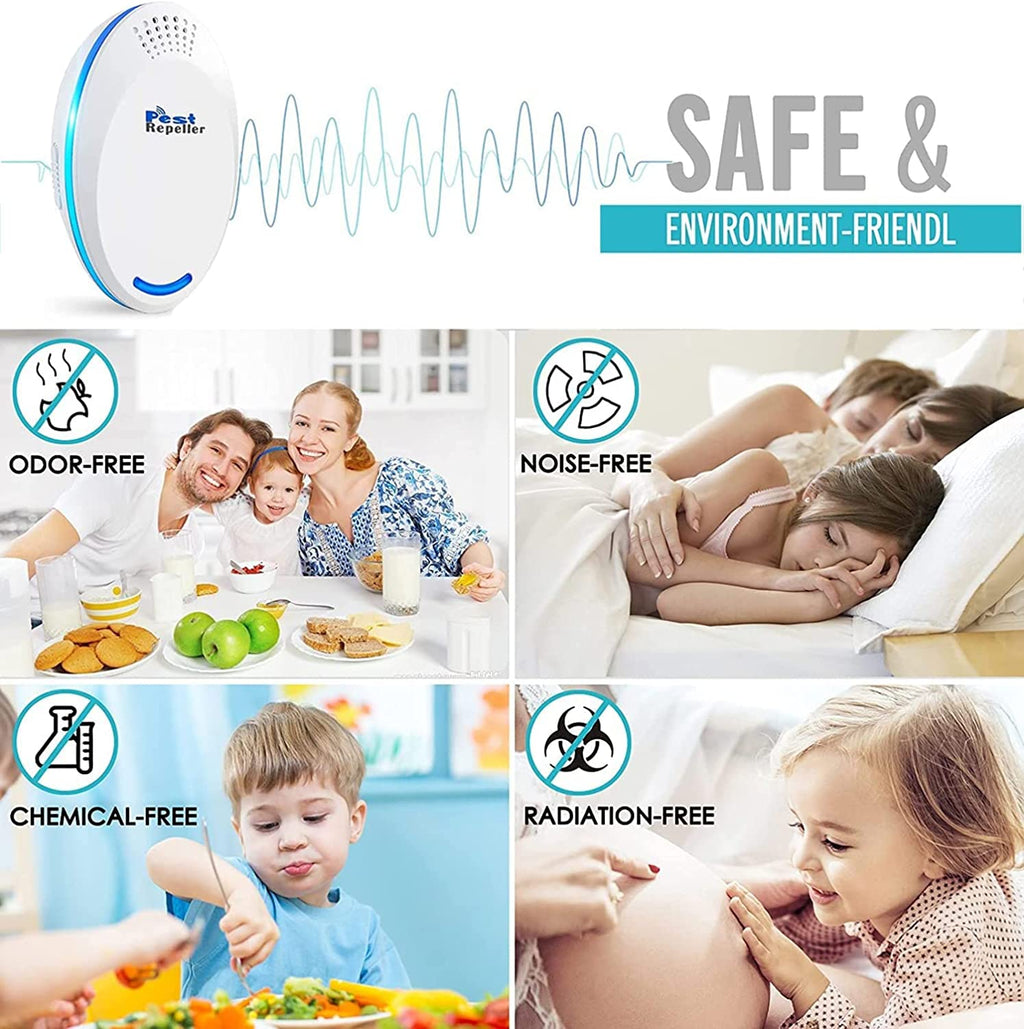 A diferencia de las soluciones químicas tradicionales, no hay posibilidad de contraer enfermedades o estar innecesariamente expuesto a productos químicos tóxicos con repelente de plagas. Simplemente repele mascotas sin poner en peligro la salud de tu familia. También es bastante seguro de usar alrededor de los niños, e incluso se puede mantener encendido en el dormitorio de tu hijo por la noche para protegerlo.