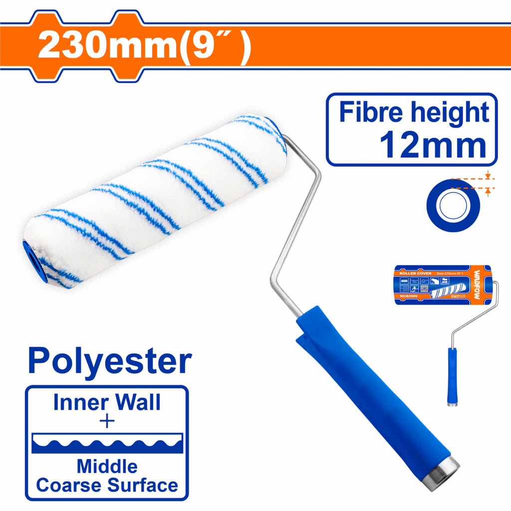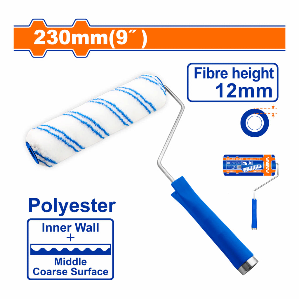 | Características | Rodillo para pintar 230mm(9") Paredes internas. Altura de la fibra:12mm.Se puede utilizar con una barra de extensión de cabeza roscada. |