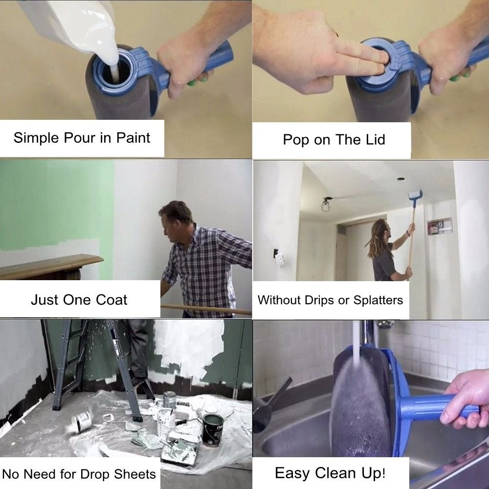 El rodillo de pintura se puede utilizar para pintar paredes, techos, vallas y mucho más sin goteo o salpicaduras de pintura y por lo tanto disminuye la limpieza luego de pintar tu casa u hogar.