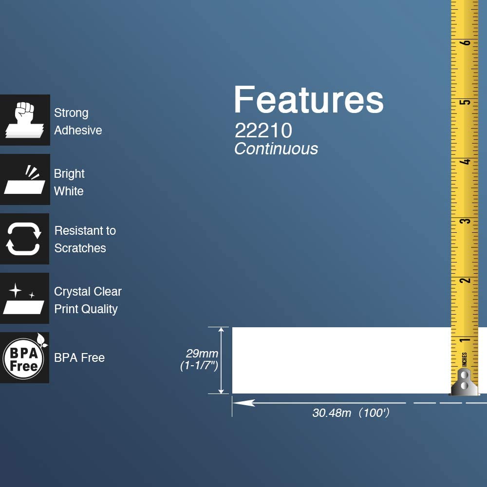 Rollo continuo para impresora brother DK-22210, 29mm x 30.8m(1-1/7'' x 100') ( con holder plastico). Color blanco