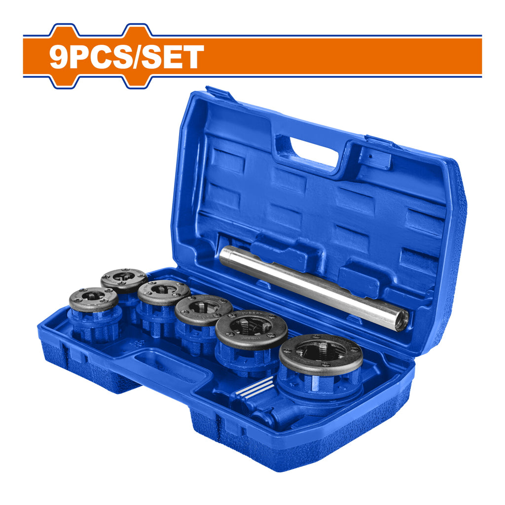 | Características | Roscas para tuberías. Set 9 piezas. Acabado negro. BSPT. Tamaño de la cabeza de troquel: 1/4", 3/8", 1/2", 3/4", 1", 1 1/4" |