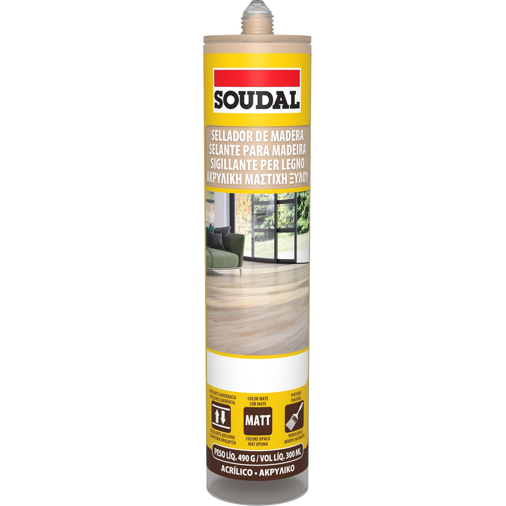 Sellador acrílico para madera, color oak (roble) oscuro. Soudal, 300 ml