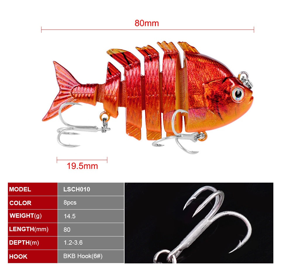 | *Nombre | Señuelo Pez 6 secciones 8cm Color rojo |