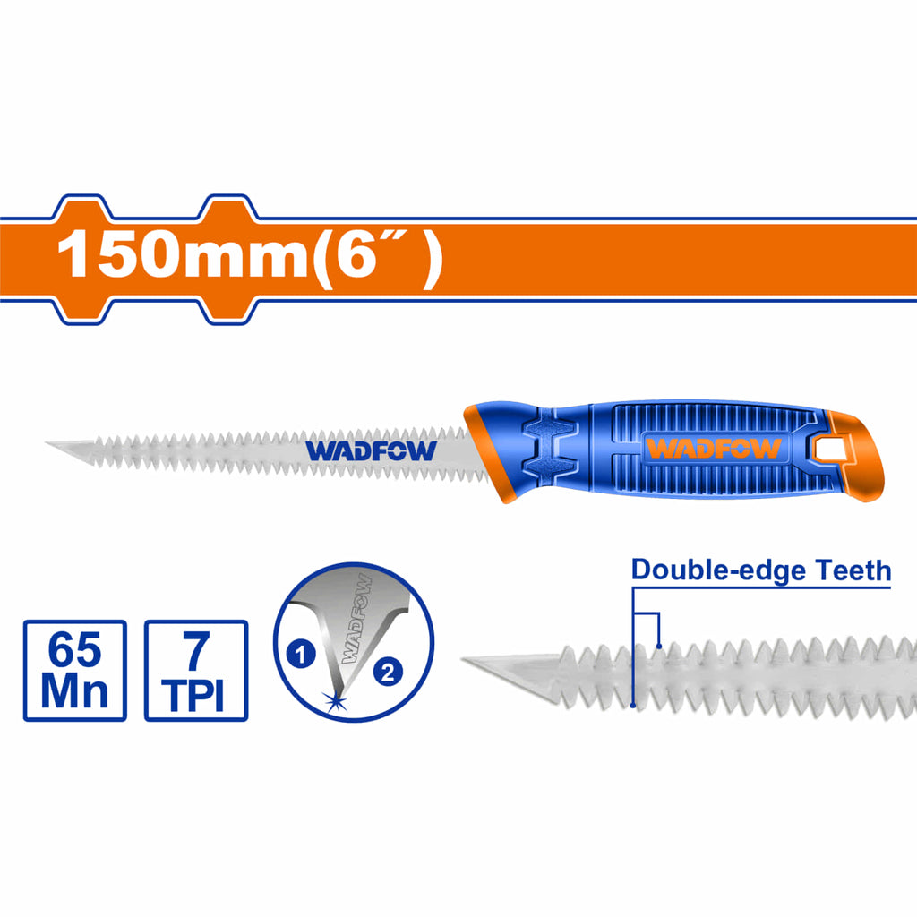 | Características | Sierra doble filo para gypsum de 6”. 65Mn. 7TPI. Serrucho para yeso. Dientes rectificados de precisión con 2 filos. Hoja de acero al carbono endurecido y dientes afilados para cortes finos suaves, afilados, agresivos y rápidos. |