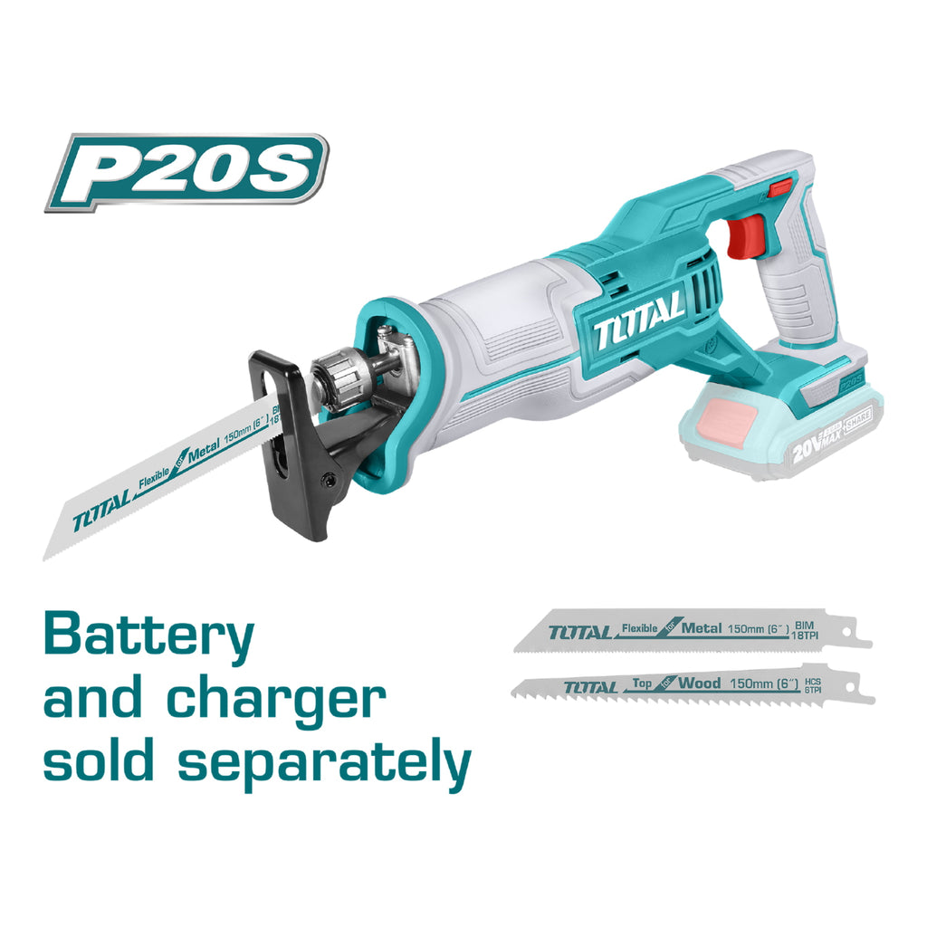 Sierra sable reciproca a bateria 20V. Velocidad 0-2800/min. Capacidad e corte 8 mm metal 115 mm madera. No incluye bateria ni cargador ( Se vende aparte)