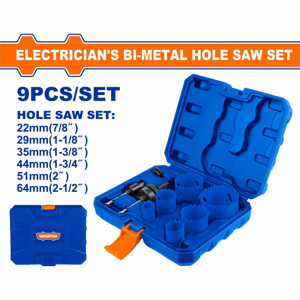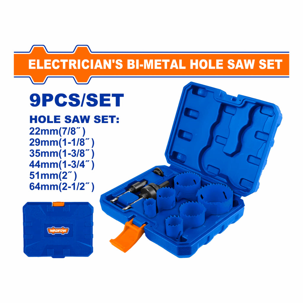 | Características | Sierras perforadoras bimetálicas para electricistas. Set de 9 piezas Incluye: Mandriles, adaptadores con rosca. estuche de plástico. |