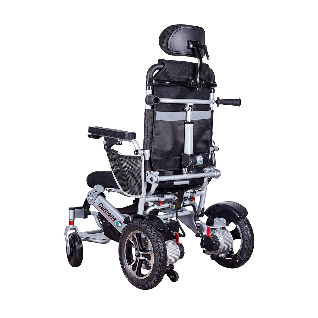 Silla de ruedas eléctrica reclinable plegable ligera 26kg. con funcion de reclinado motorizado. Control remoto. Batería litio