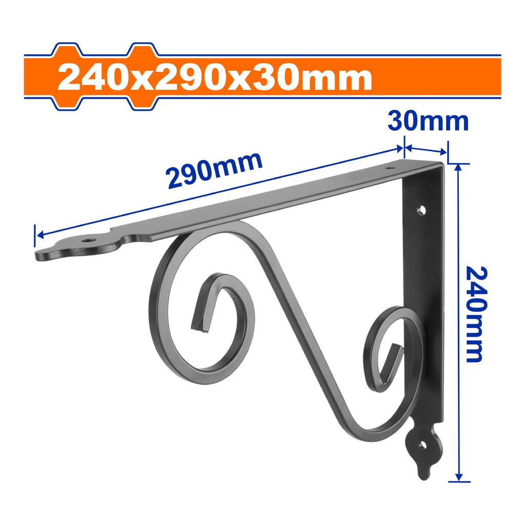 | Características | Dimensiones del soporte: 9'x11" (24x29 cm). Espesor: 3.5 mm. Capacidad de carga (por par): 60 kg. Utilizado como soporte para estantes con 4 puntos de fijación. Color: negro. |