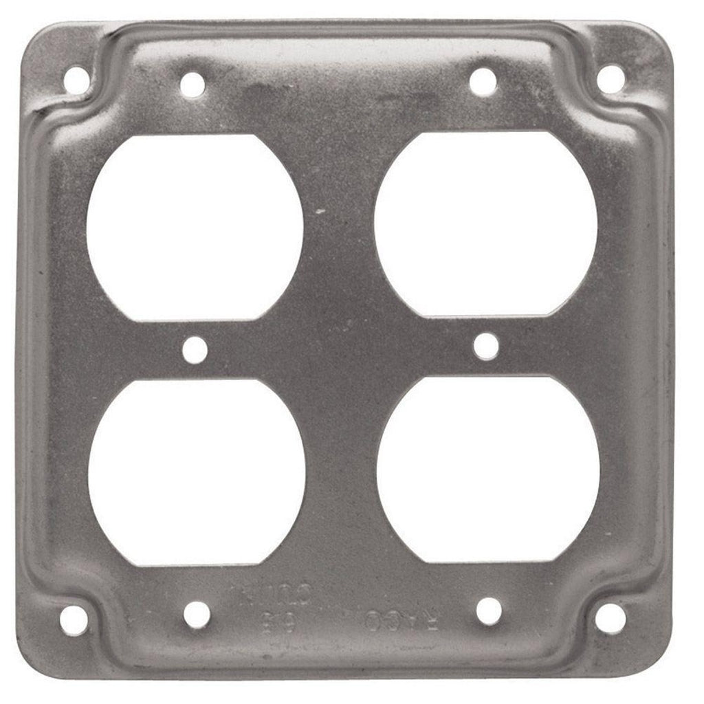 Tapa Metalica para Cajilla de 4x4 con Hueco para 2 Tomacorrientes Dobles. No incluye Tornillos. Acero Galvanizado. Espesor de 1.0 mm. Codigo de Barra con Sticker