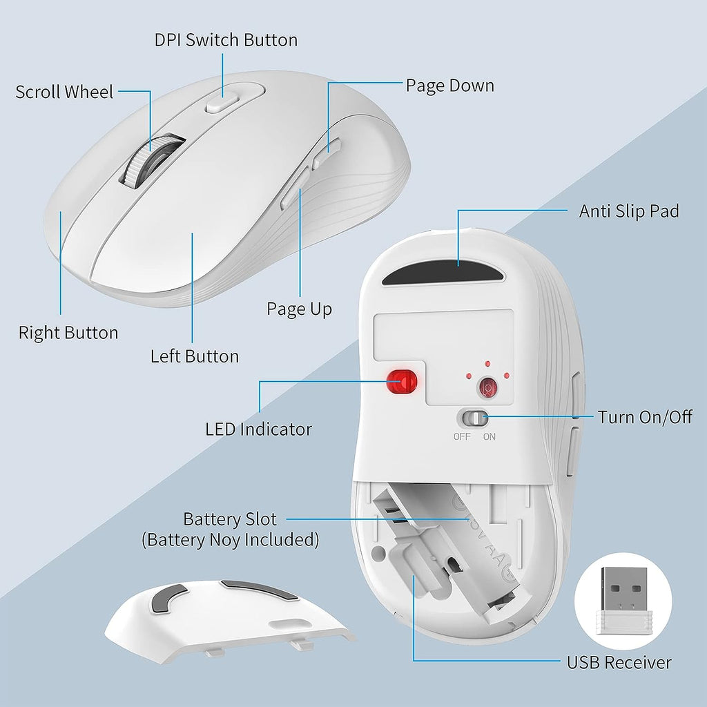 Teclado y mouse inalámbricos compatible con Windows, MacBook y Laptop color Blanco.