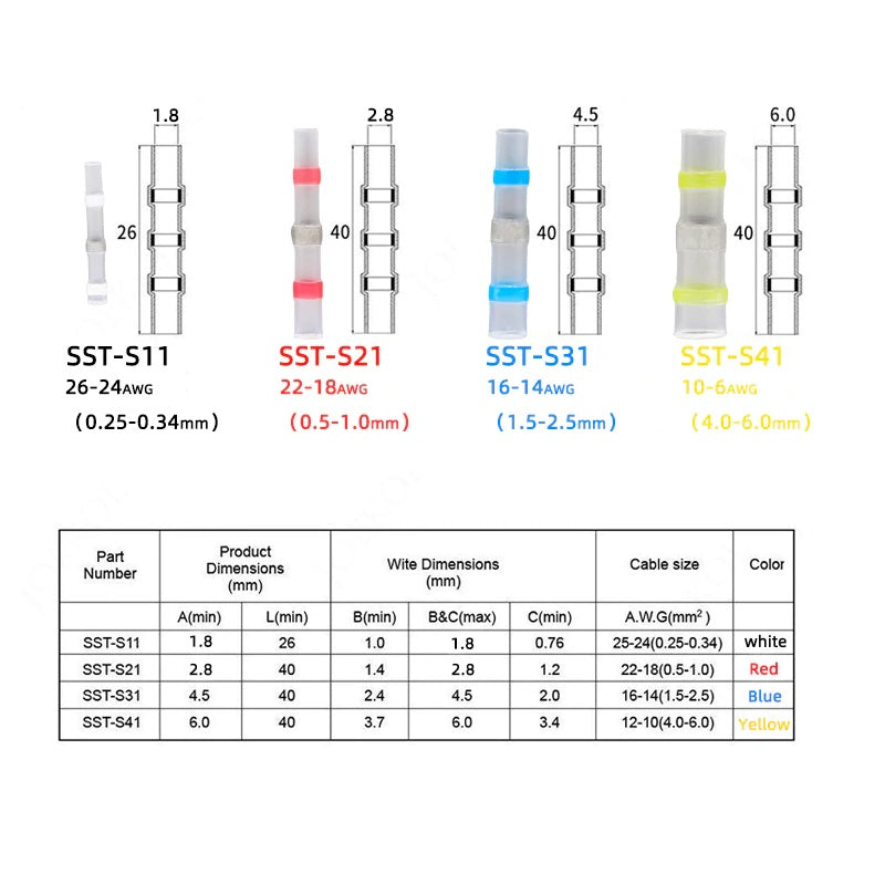 Este kit le proporcionará una soldadura de alta calidad y terminales sellados adecuadamente. Nuestros conectores de soldadura y sellado térmico le asegurarán que se mantenga firme y estable los cables, ¡Con mayor resistencia a la corriente y al clima!