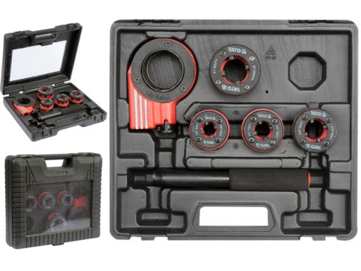 Yato Terrajas Para Tubos Con Ratchet, 4 Piezas, Bsp: 3/8'', 1/2'', 3/4'', 1”. Terraja Para Tubos, Terraja Con Ratchet, Terraja Con Carraca BSPT THREAD: 3/8'', 1/2'', 3/4'', 1''
