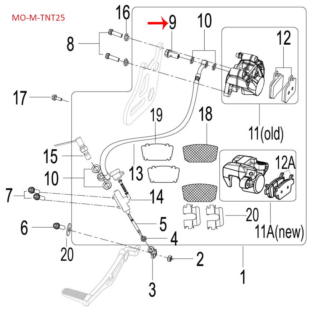| *Nombre | Tornillo hueco de manguera de freno (TNT25 / TRK251 / LEONCINO250 / LEONCINO500 / TRK502X / TNT600) |