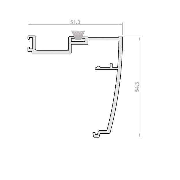 Traslape - Cruce de Hoja. Serie Elevable Europa. Color Blanco. Dimensiones 50x55 mm. Espesor 1.5 mm. Largo 5.85 m