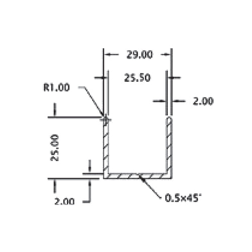 | *Nombre | U channel en aluminio con apariencia inoxidable |