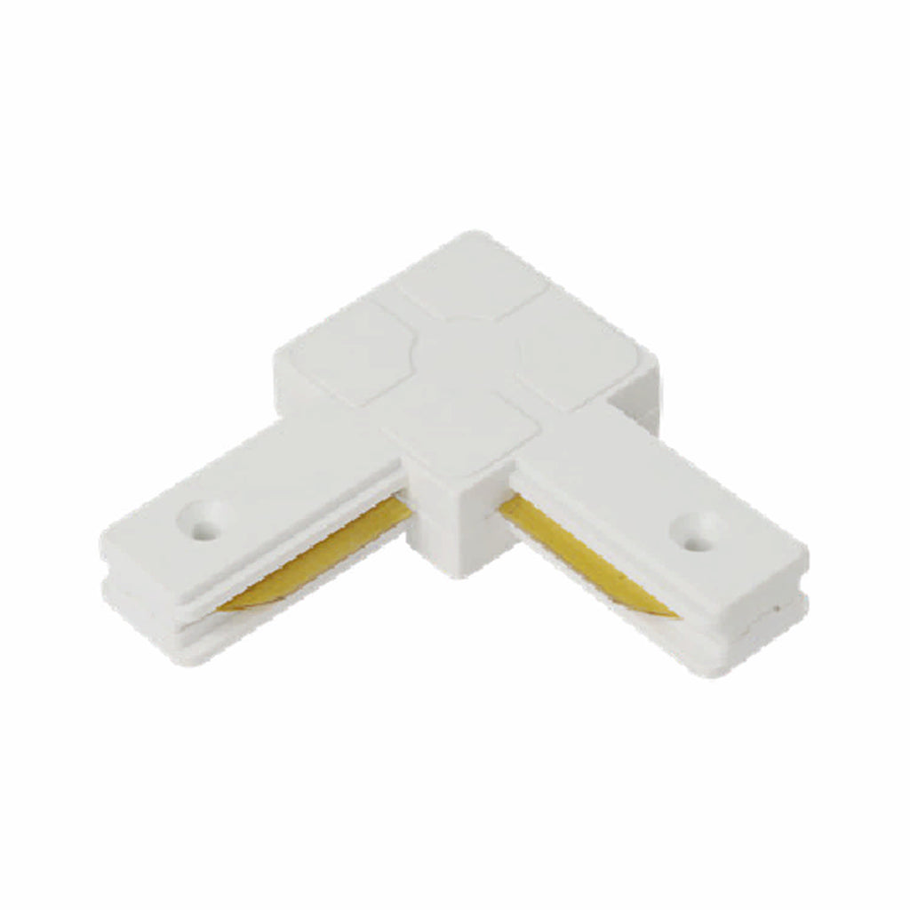 UNION L PARA RIEL BLANCO La unión en forma de ''L'' permite conectar dos secciones de riel blanco en un ángulo de 90 grados, creando una esquina o una curva en el diseño del sistema de iluminación. La instalación de la unión en forma de ''L'' es generalmente sencilla y no requiere herramientas especiales. Simplemente se conecta a ambos extremos de los rieles que se desean unir, asegurando que queden en ángulo recto entre sí.