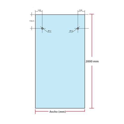 V. Fijo Eolo. Vidrio Templado 10mm espesor, 2m de alto.